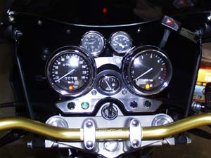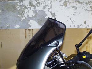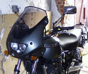 Die Five Star war die erste Verkleidung die das Mopped sah. Ich musste lang Experimentieren bis Ruhe hinter der Verkleidung einzog. Als erste kam die Spoilerscheibe. Aber immer noch Turbolenzen im Helmbereich. Dann habe ich die seitlichen Streben um ca. 2cm verlängert. Jetzt war's gut. Noch die Scheinwerferlage mit ein paar Unterlegscheiben korrigiert. Und fertig. Hab ich später dann gegen eine von MBD ersetzt. Die Strebe Rüttelte sich immer wieder kaputt. Bei dieser Verkleidung war dafür aber noch Platz für ein paar Zusatz- instrument und die Warnblinkanlage.